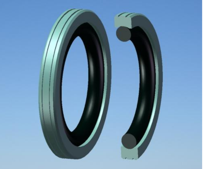 格莱圈由一个橡胶O型圈及聚四氟乙烯圈组合而成,材质为PTFE + NBR,特殊情况下橡胶弹性体丁腈胶NBR采用氟胶FKM。它可分为孔用格莱圈和轴用格来圈,但其密封作用是一样的,依其本身的变形对密封表面产生较高的初始接触应力,阻止无压力液体的泄漏。液压缸工作时,压力液体通过O形密封圈的弹性变形始最大限度地挤压方形密封圈,使之紧贴密封表面而产生较高的随压力液体的压力增高而增高的附加接触应力,并与初始接触应力一起共同阻止压力液体的泄漏。